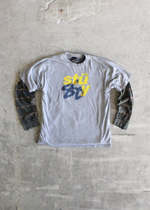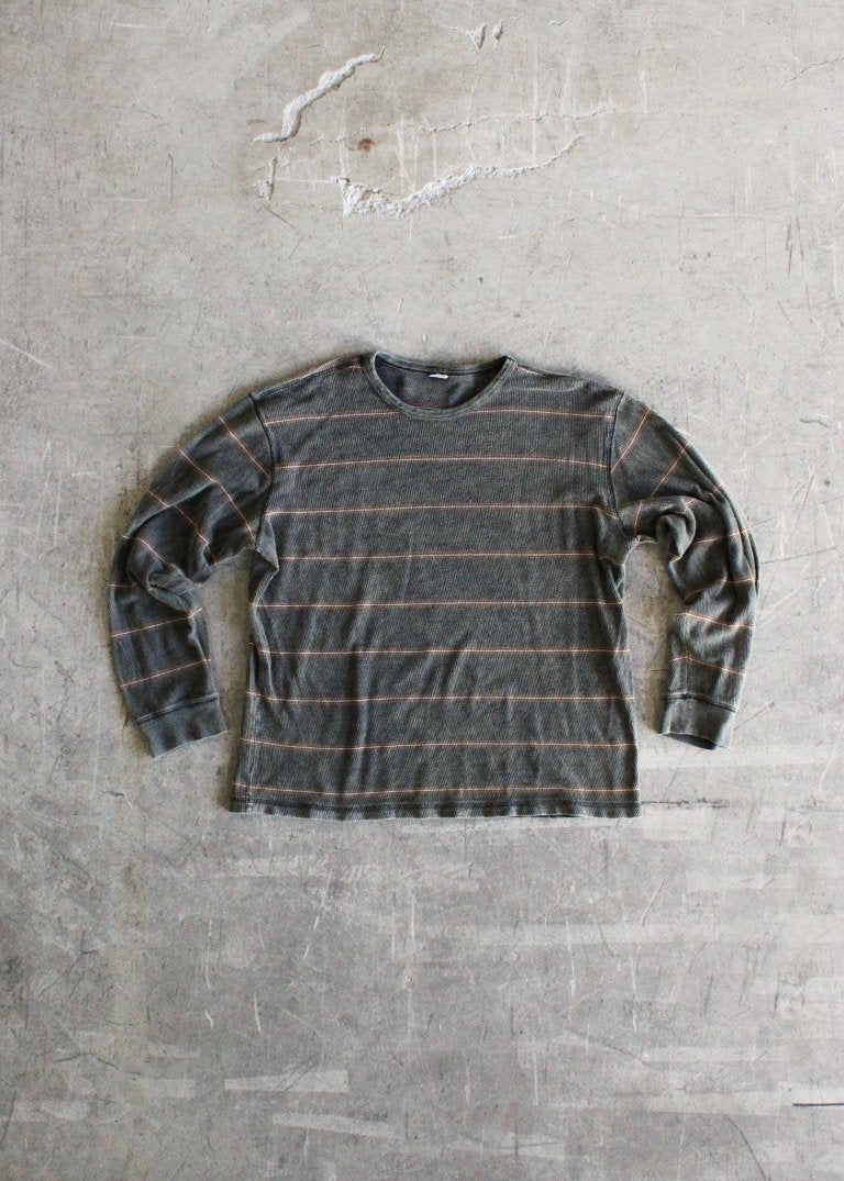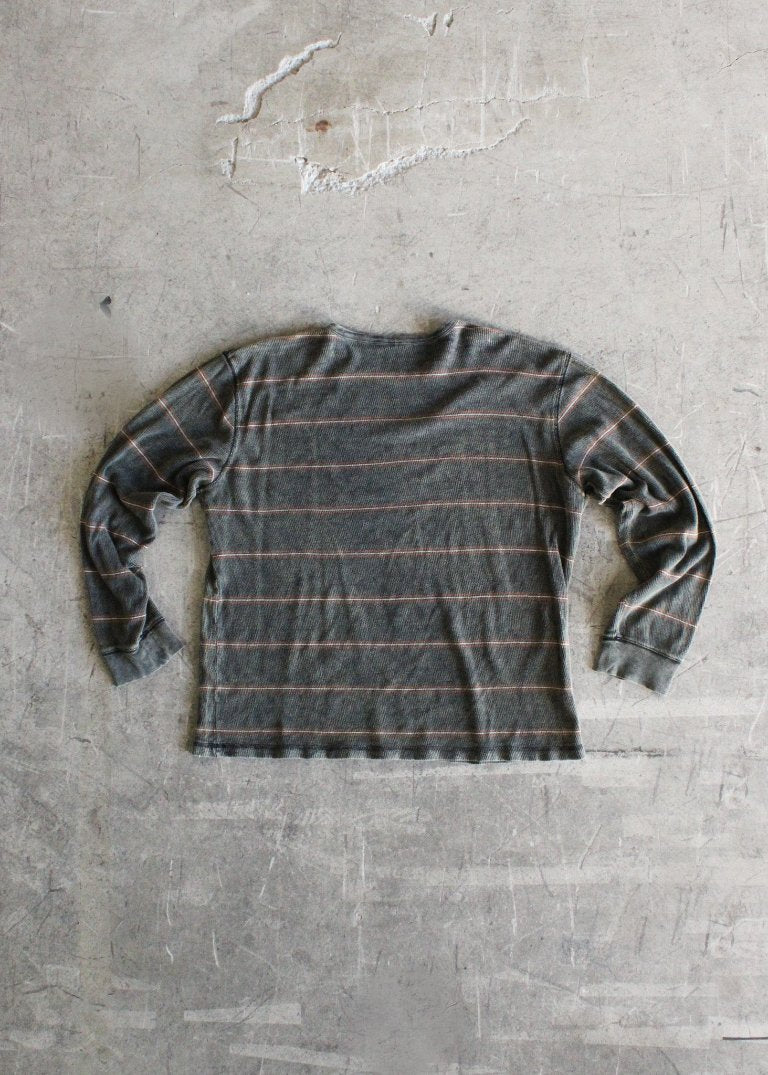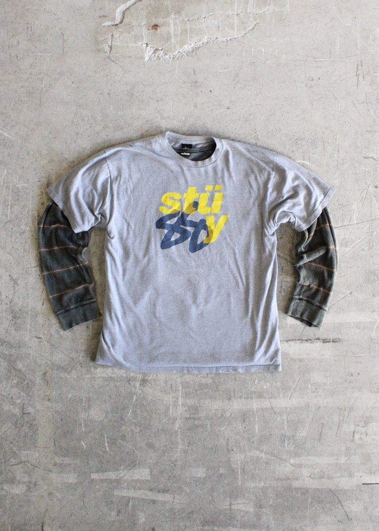 Authentic Y2K Stussy graphic tee paired with a thermal striped long sleeve that has been acid washed for a unique and comfortable feel.