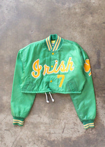 Vintage Irish baseball jacket that has been up-cycled and cropped for a casual sporty vibe.
