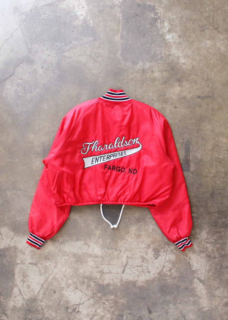 Vintage baseball jacket that has been up-cycled and cropped for a casual sporty vibe.
