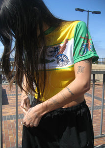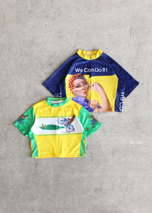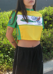 Cropped Biker Tops that have been up-cycled from authentic vintage biker style tops, giving it that perfectly worn-in feel with a fresh, modern cut. Each piece is cropped for a flattering fit that pairs effortlessly with an active or casual vibe, no piece is like the next. Your product will be similar but not identical to the products shown.