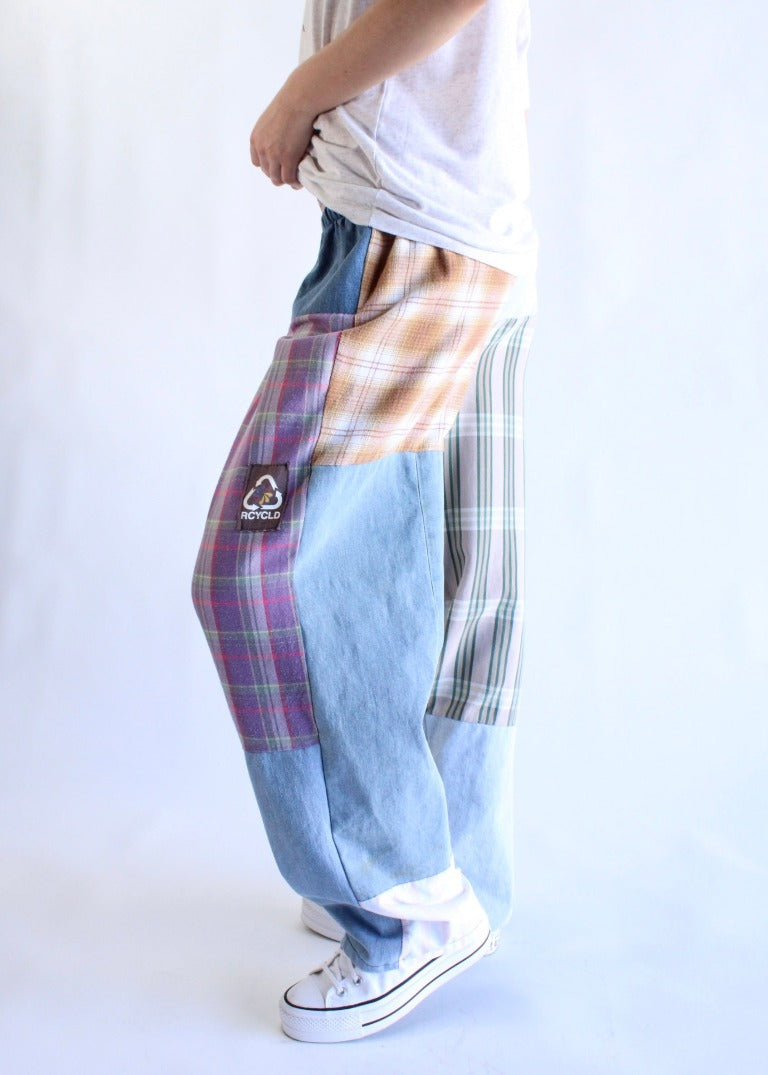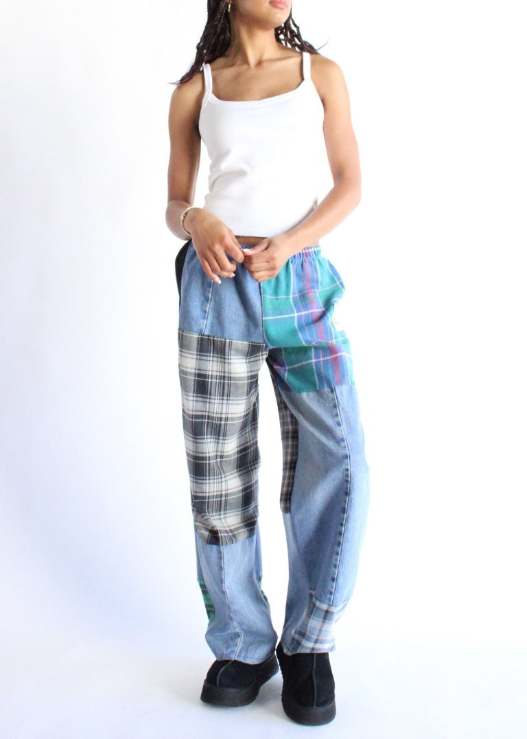 RCYCLD Flannel & Denim Combo Pieced Pants