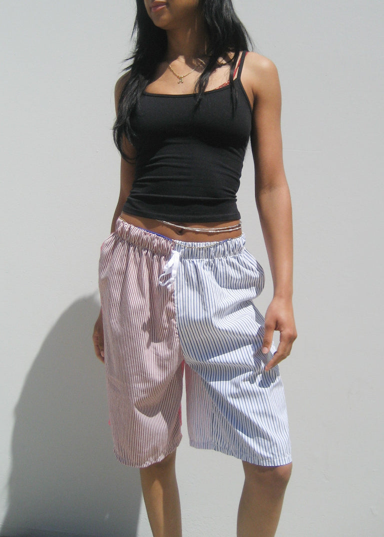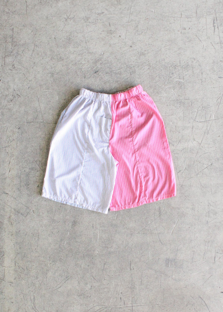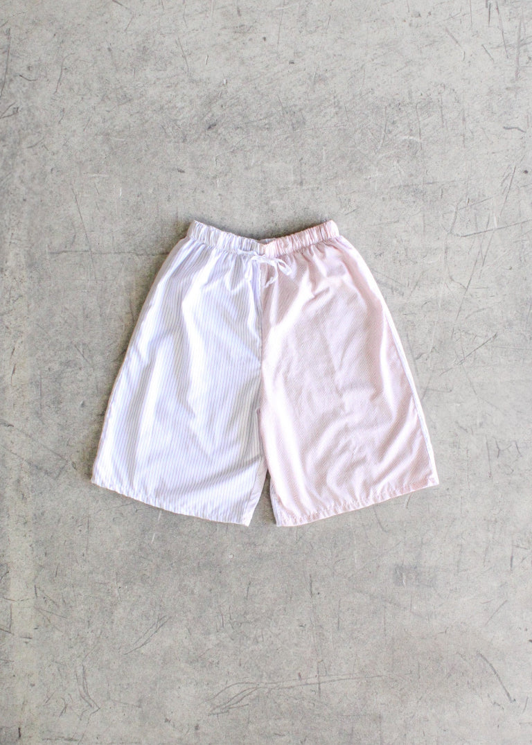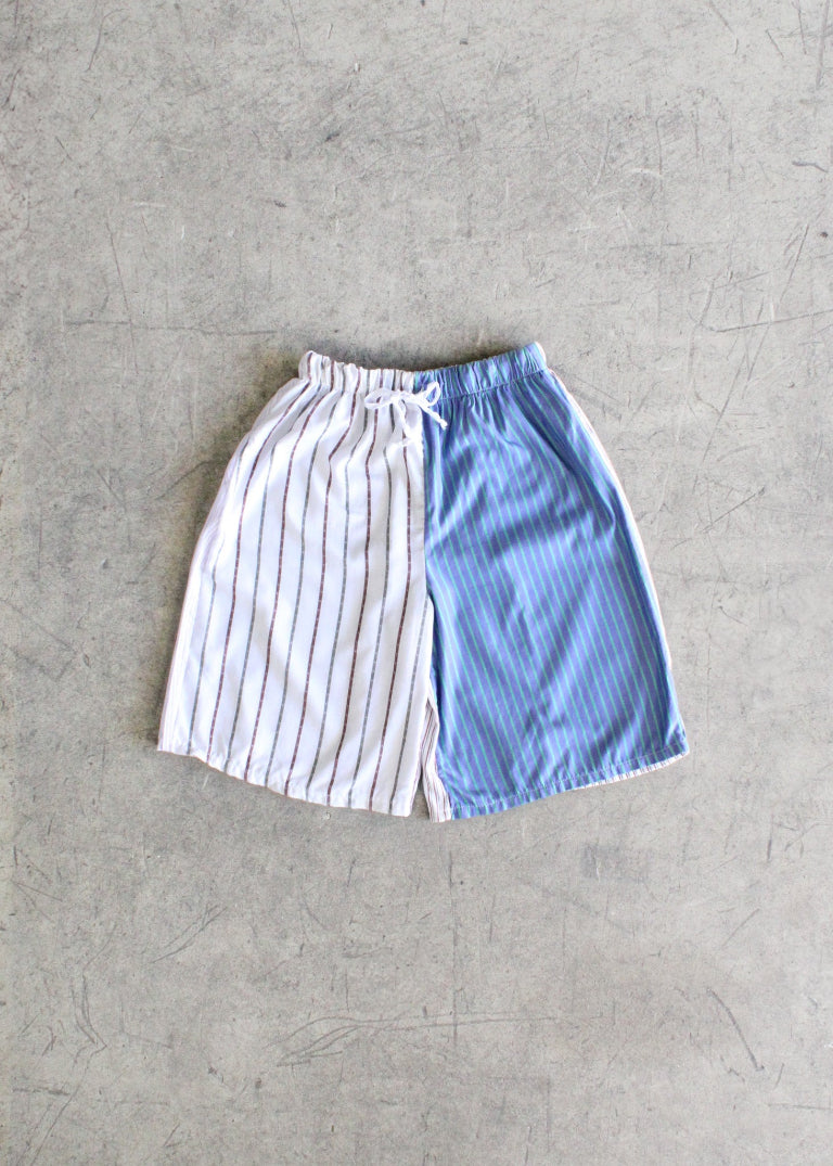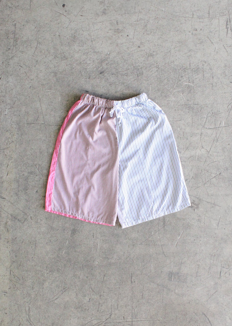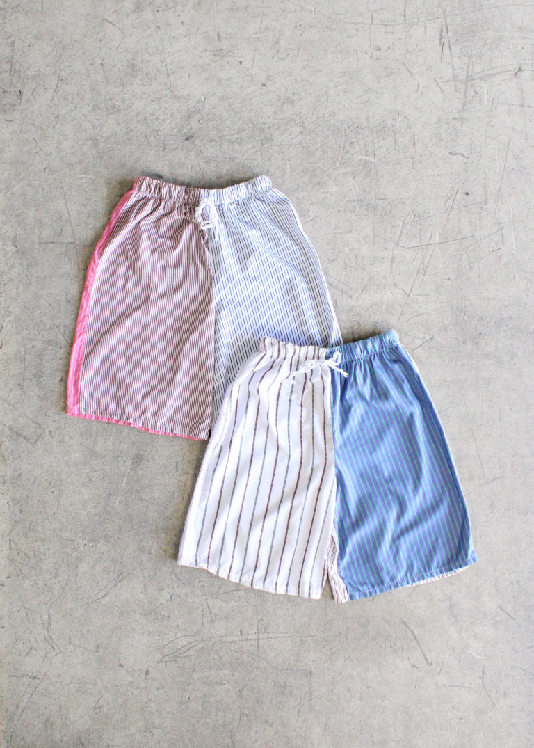Reworked from striped button down shirts, these shorts are designed to be versatile, lightweight and breathable. Each piece will have a one of a kind striped combination and color-way. Your piece will be similar but not identical to the product shown.