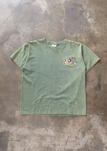Authentic 1990s-Y2K Disney t-shirt with embroidered patch. Some bleach spots visible.