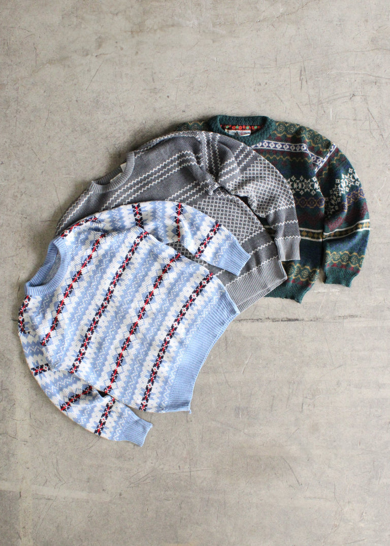 A curated Vintage Fair Isle sweater that has been carefully hand-picked for it's charm and individuality. Each sweater varies slightly in a fair isle print and color-way the sweater you receive will be similar to but not identical to the products shown.