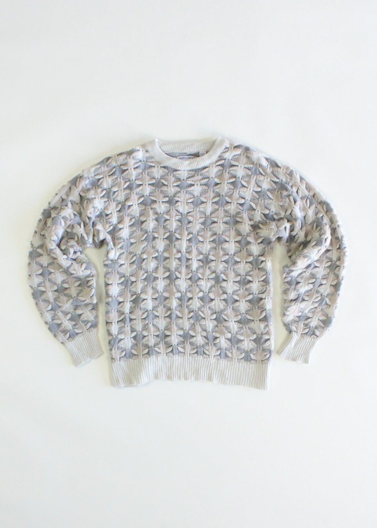 Authentic 1980s-1990s Coogi style printed and textured knit sweater.